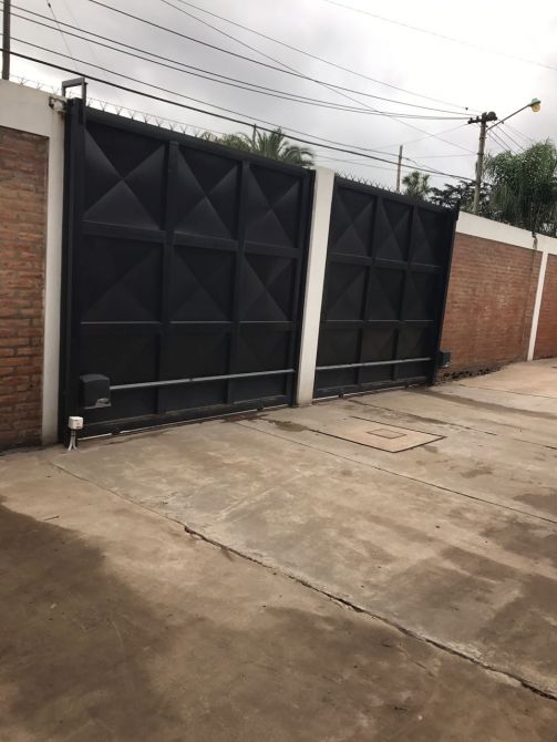CON CERCO PERIMETRAL Y DOS PORTONES AUTOMATICOS DE METAL.
